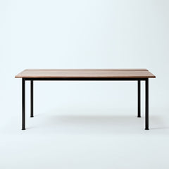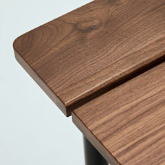ウォールナット天板の脚には、マットブラックスチールを採用。インダストリアルな質感が、デスクの機能美を際立てます。