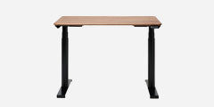 "一見シンプルだが、無垢材の天板やさりげない配線トレイなどディテールが洗練されている"