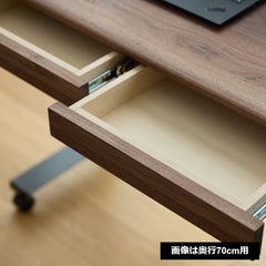 オプションで追加できる、A4のクリアファイルが収納できる天板下の引き出し収納。後付け可能な設計なので、必要を感じてからの追加購入も可能です。 ※画像は奥行70cm用 ※仕様は変更となる場合があります。