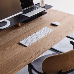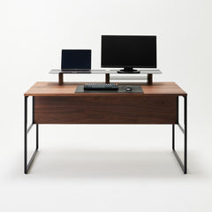 特注も可能です。ある著名なデザイナーとの会話で聞いた話。「クリエイティブの質は、デスクの広さに比例する」デスクの広さは、効率的かつ創造的にデスクワークするために必要不可欠です。限られた空間で、大きめのモニターを使っても心地良い距離を保てるように、幅120cmに奥行70cmのサイズを追加設定しました。特注も可能ですので、あなたの理想をお聞かせください。
