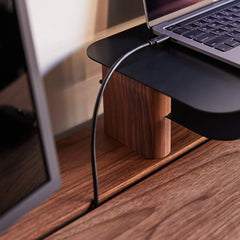 天板後部には配線とアーム取り付け用のスリット加工が施されているため、壁との隙間なくモニターアームの取り付けが可能。好きなデバイスに囲まれた、最高のワークスペースを作りましょう。