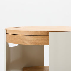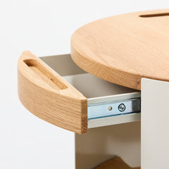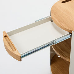 引き出しの端部には配線用の孔が開いているため、収納したまま機器の充電が可能です。