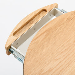 天板下に取り付けられた浅い引き出しは、チラシや郵便物などの紙類をサッとしまえます。
