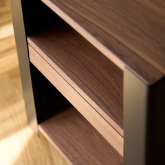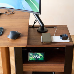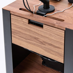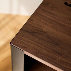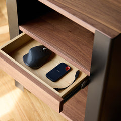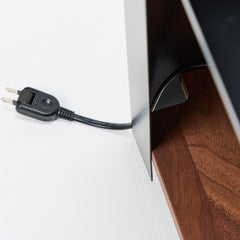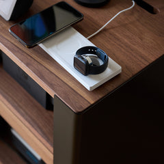 チャージスペースの背面にはマグネットで簡単に着脱できるウォールナットのカバーが着いています。 見せたくない配線のごちゃごちゃもサッと隠すことができるため、来客のあるリビングやダイニングに置いても配線のごちゃごちゃが気になることもありません。